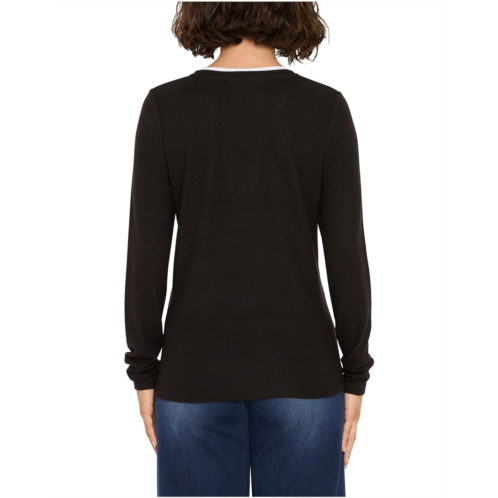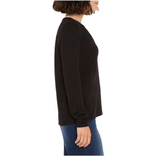 A layered look with less effort. This two-fer top features placed interior jersey to create the illusion of an underlayer while also creating chic color contrast: an easy way to mix up your everyday top. Featuring a dramatic split neck with the slight overlap at the base of the V. Wear it with denim or a clean trouser.
