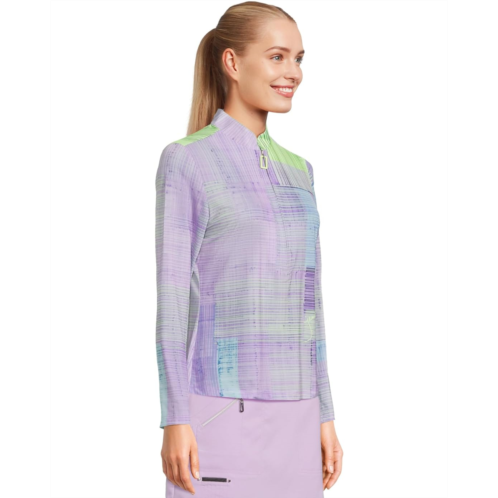 [US] Jamie Sadock Long Sleeve Tartan Print Sunsense 1/4 Zip Top