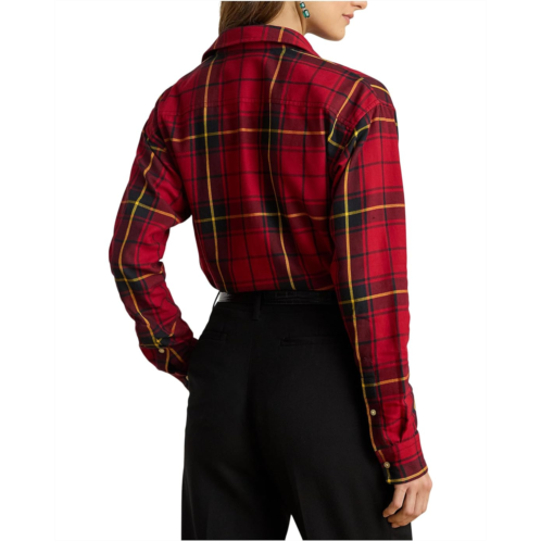 Rendered in lightweight cotton twill, this relaxed-fitting button-up shirt is refreshed with the season's yarn-dyed checked plaid pattern. Featuring a point collar with a front buttoned placket, buttons custom-developed with a 'Lauren Ralph Lauren' logo, long sleeves with buttoned barrel cuffs, dropped shoulders, back yoke, and a shirttail hem.