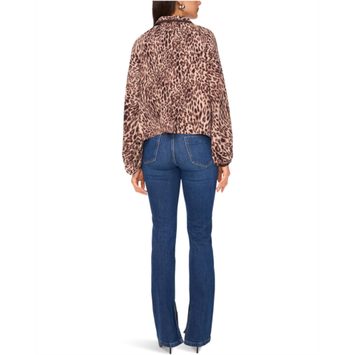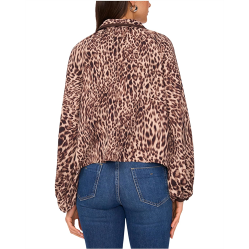 Step out in chic style in the Vince Camuto Full Raglan Sleeve Shirt. Featuring a spread collar with a front button closure, long sleeves with elastic cuffs, allover print, and a straight hem.