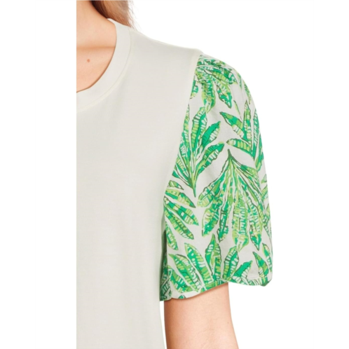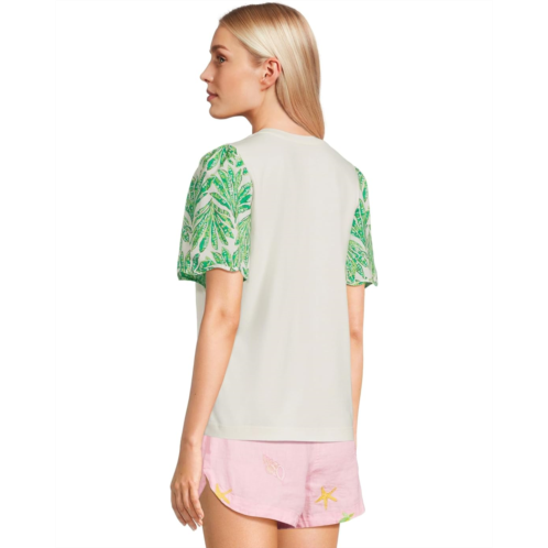 The Lilly Pulitzer Brittan Knit Top features a straight fit and banded crew neckline, offering a clean, flattering silhouette. The standout feature lies in its drapey short sleeves, finished with a scalloped edge that adds a touch of feminine flair.