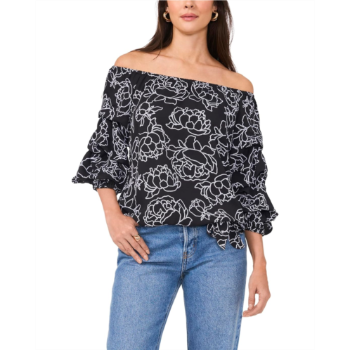 Show off your style wearing the Vince Camuto Off The Shoulder Blubble Sleeve Blouse. Featuring off-shoulder neckline, three-quarter length bubble sleeves, loose fit, pull-on style, and allover printed design.