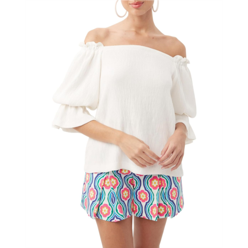 Stylish and elegant, the Trina Turk Antu Top pairs well with your skirt, jeans, or denim shorts for an effortless look. The loose bodice fit top has an off-shoulder neckline and long sleeves with elastic cuffs for a statement look. The top features an intricate texture that makes it a decent addition to your closet.