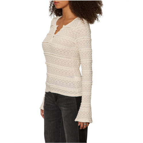 Amp up the style game wearing the Sanctuary Lovely Lace Button Front Top. The pull-on style top features a Henley neck with quarter-button detail, long sleeves, allover lace & ruffle details, and a straight hem.