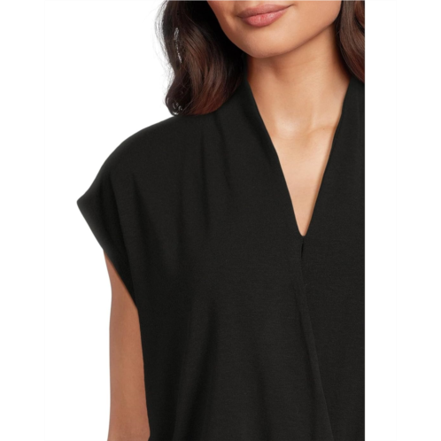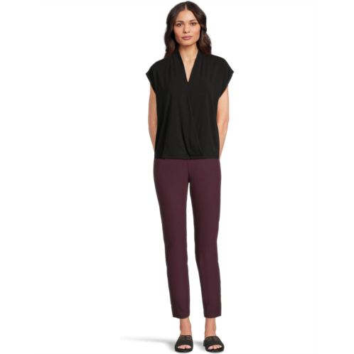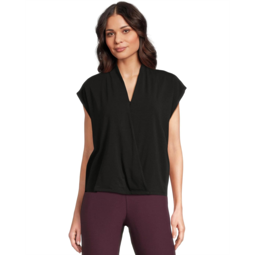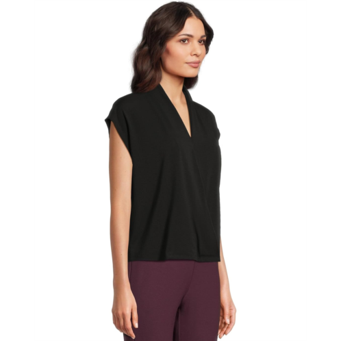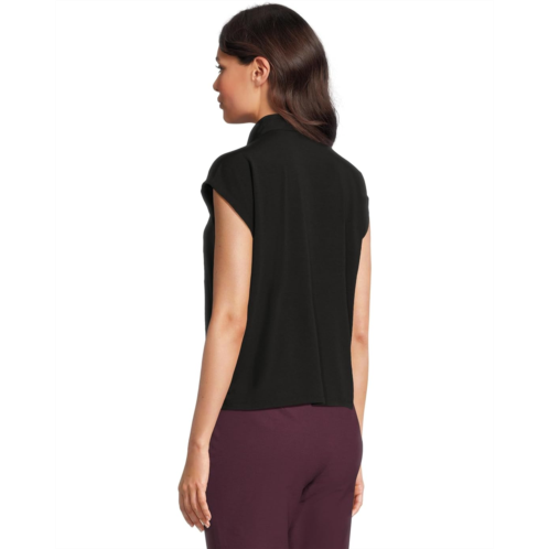 The Eileen Fisher Fine Stretch Jersey Knit High Collar Top is a body-skimming jersey that goes from day into night. Polish that's right for any occasion. It features a crisscross V-neckline, cap sleeves, and a wrap silhouette.