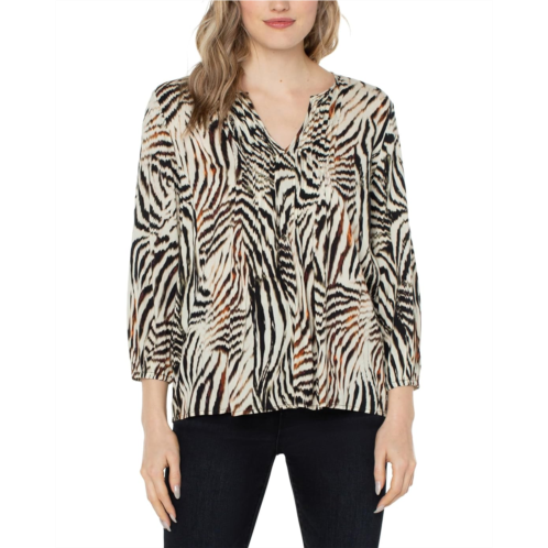 Keep your look fun and gorgeous by donning the comfortable Liverpool 3/4 Sleeve Peasant Top with Pin Tucks blouse with allover animal print. The pullover style features pintuck detailing that puntuates a flattering sillouhette.