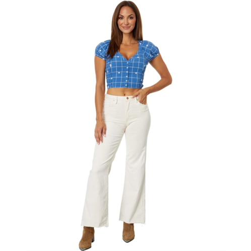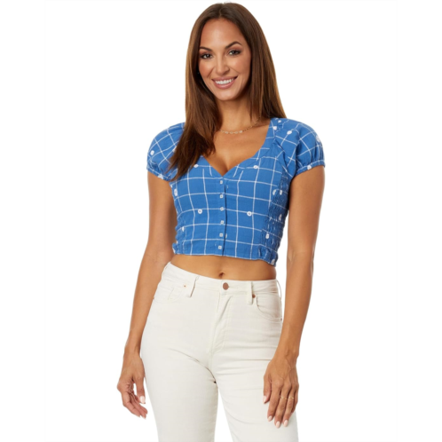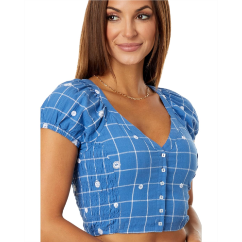 Slay the day in style wearing the Madewell Monika Top with Blue Windowpane. This cute cropped-length top features V-neckline, buttoned front closure, and short puffed sleeves that make heads turn.
