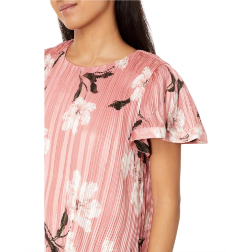 Elevate your charm with this floral print CeCe Flowy Pleated Blouse, a darling addition to your wardrobe that exudes both elegance and cuteness. This pullover lurex stripe top fetures crew neckline and flowy short sleeves.