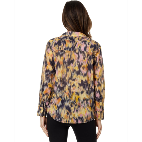Crafted from soft cotton, NIC+ZOE Dreamy Refined Ruffle Shirt will offer you a vibrant and bold touch to your appearance. It is designed with long sleeves with button cuffs, collared V-neckline, and allover iconic print.