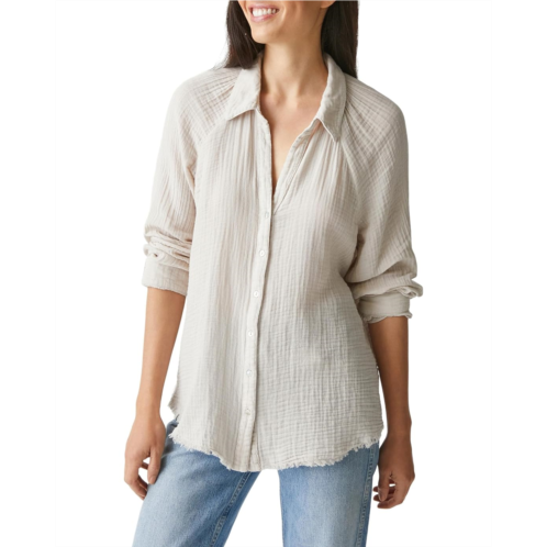 Get ready to turn heads in this chic yet simple Michael Stars Toni Button Down Shirt. This relaxed fit shirt features a spread collar, long raglan sleeves with ruched detailing and buttoned cuffs. Its raw shirttail hem adds an edge to your casual look.