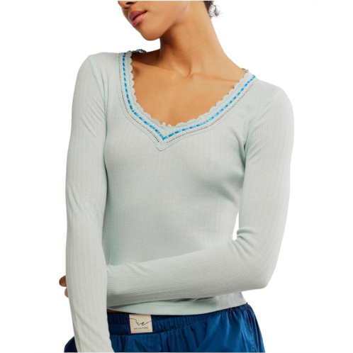 Slotted ribbon detailing around this neckline gives this pointelle Free People Only You Long Sleeve top from Intimately the perfect femme touch. This LDS knit pullover style fitted top features soft, light ribbed pointelle fabrication, V-neckline, fitted long sleeves, lace trim at neckline, and slotted ribbon detailing.*Why We<3 It:* An elevated basic for endless dainty looks.