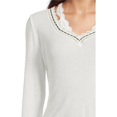 Slotted ribbon detailing around this neckline gives this pointelle Free People Only You Long Sleeve top from Intimately the perfect femme touch. This LDS knit pullover style fitted top features soft, light ribbed pointelle fabrication, V-neckline, fitted long sleeves, lace trim at neckline, and slotted ribbon detailing.*Why We<3 It:* An elevated basic for endless dainty looks.