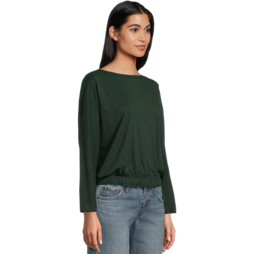 The Lilla P Elastic Hem Dolman Boatneck tee, amde of Flame-Modal fabric, is effortlessly polished. The boat neckline is finished with a facing for a refined look, while the dolman sleeves add an easy, relaxed feel. Its bottom hem is designed with elastic thread, creating a lightweight, stretchy band that flatters without needing to be tucked in. This long-sleeve top is perfect to pair with trendy denim or shorts.