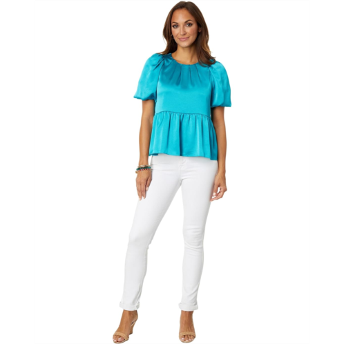 Designed with the pull-on style, the Lilly Pulitzer Blakelynn Elbow Sleeve Top will give you a flattering glance. It features the ruffled hemline, bubble elbow-length sleeves, and round neckline with pleated detailing.