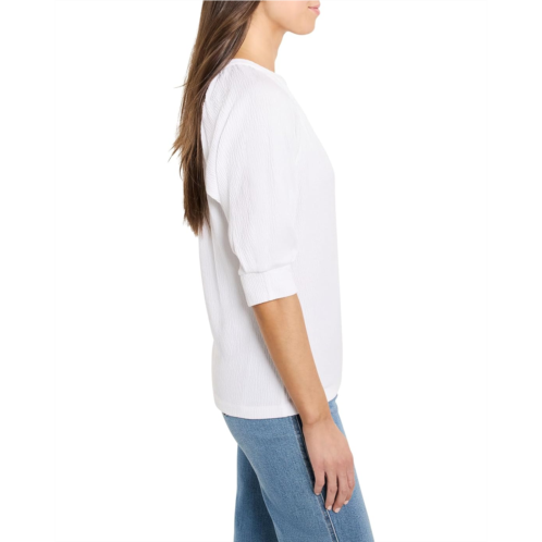 What to wear on your next coffee run, whether you're hitting the drive-through or taking your time. This elevated everyday NIC+ZOE Crinkle Knit Cafe Top features raglan elbow sleeves, a slight gathering over the cuff, and a split neckline. Made from a new fabric with the perfect combination of texture, drape, and stretch. Designed with an easy silhouette that sits at the hip. Goes great with jeans!