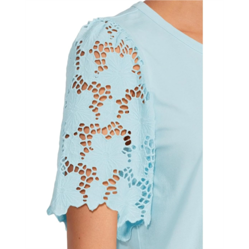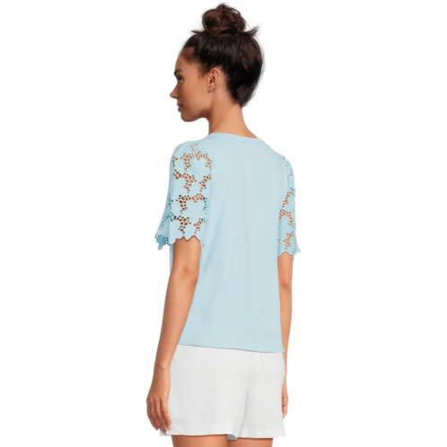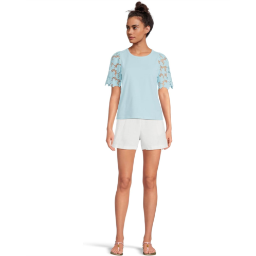 Meet the Lilly Pulitzer Sebene Knit Top, your go-to for polished charm and breezy elegance. Designed in a straight fit, this top drapes beautifully, offering a flattering silhouette that moves with you. The banded crew neckline adds a classic touch, while shirred shoulders create a hint of feminine structure. The real showstopper? The unlined eyelet elbow-length sleeves, blending delicate texture with an airy feel for a stylish yet breathable look. Finished with signature branded hardware and a pull-on design for easy, everyday wear, this top is the perfect mix of effortless sophistication and casual luxury.
