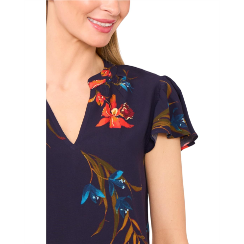 Effortlessly feminine, the CeCe V-neck Shirred Neck Flutter Sleeve Blouse features a delicate shirred neckline and flutter sleeves for a soft, flowy silhouette. The V-neck adds an elegant touch, while the viscose fabric provides superior comfort and breathability. Featuring an allover floral print, this printed top is perfect for both office wear and casual outings.