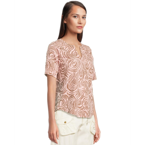 Elevate your casual wardrobe choosing the Mod-o-doc Half Sleeve Split Neck Tee. This versatile tee features a flattering split V-neckline, short sleeves, and a regular fit. Perfect for everyday wear, this tee is made from soft and lightweight fabric that will keep you comfortable all day long. Complete with a curved hem, this tee is a must-have for any fashion-forward individual.