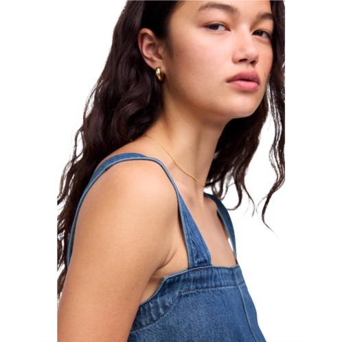 The Madewell Crop Swing Top In Mcnair Wash is a breezy and versatile piece, perfect for casual outings. Designed with a boxy, cropped silhouette, it features wide shoulder straps, a square neckline, and a front seam for a modern touch.