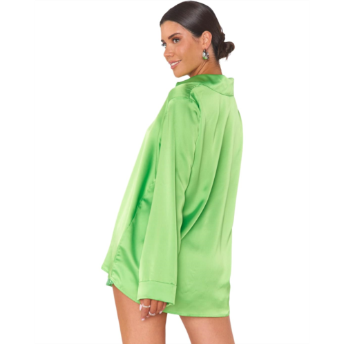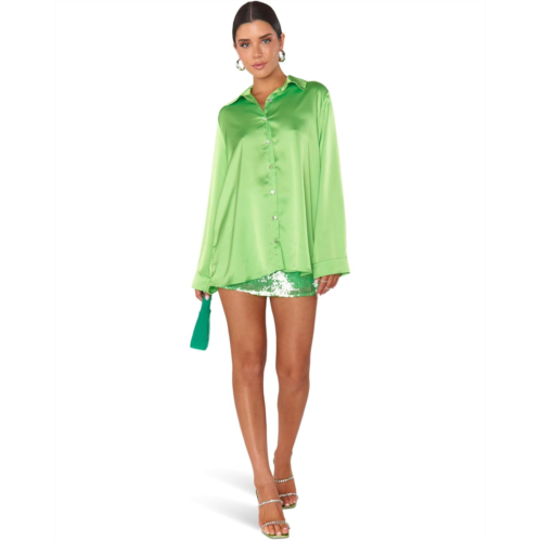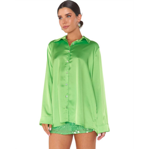 Step into the spotlight styling this silky solid and oversized Show Me Your Mumu Smith Button-Down shirt with your favorite bottoms. It features a spread collar, long sleeves with drop shoulders and buttoned cuffs, and a shirttail hem.