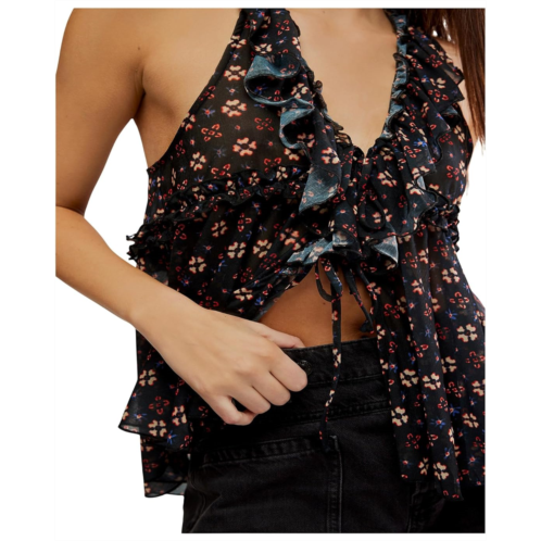So us in every way, this ruffle-adorned Fearless Knit tank by Free People is featured in a flyaway design and a creepy sheer knit for the perfect top that can truly do it all. With its relaxed, flowy fit, this versatile piece stuns with a V-neckline, racerback cut, and delicate ruffle trim. The open-front design with a tie closure and pointed hem adds a flirty finish, making it just as perfect for laid-back layering as it is for dressed-up moments.