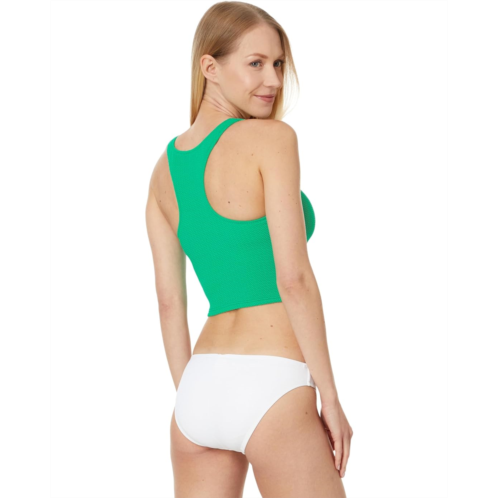 Enjoy the cheerful spirirt of fun beach day wearing Seafolly Sea Dive Action Back Tank, that comes in a quick-drying fabrication. The solid-patterned tank features the classic sleeveless design, internal shelf bra for support, round neckline, a standard fit, and a racer-back cropped silhouette.