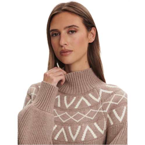 TheVarleyMarcie Fairisle Yoke Knit boasts a relaxed fit, turtleneck, and chic balloon sleeves, complemented by an intricate allover ribbed design and contemporary V monogram Fair Isle yoke.