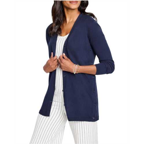 Designed with an effortlessly drapey fit, this overlong NIC+ZOE Destination Button Cardigan taps into the trend while keeping it versatile-wear it open for a relaxed vibe or button it up for a sleek, polished look. It features long sleeves, a button-front closure, and a straight hem. Thoughtful side buttons let you customize the fit, from an open side slit for a little extra venting, buttoned, or even tied for added shape. Wherever you're headed, this cardigan is the perfect finishing touch.