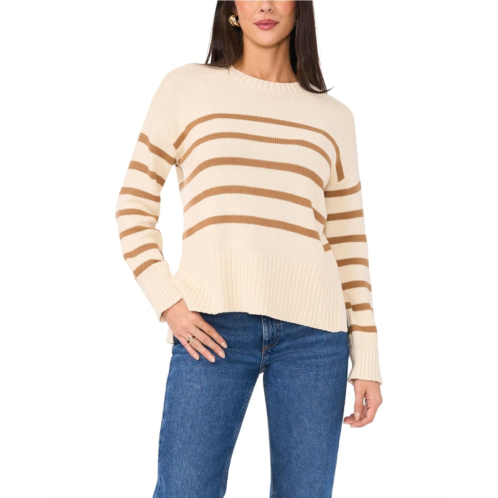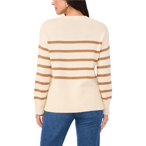 Warm and stylish, the Vince Camuto Mock Neck With Stripes sweater makes a great addition to your wardrobe. Made from cotton fabric, it provides superior comfort and long-lasting warmth. This pullover sweater comes with long sleeves, a mock neckline, and a straight hem. Stay warm and cozy wearing this striped sweater.