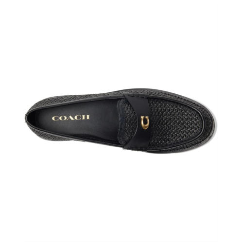 Enriched with a woven raffia and smooth leather upper with an iconic logo accent, the COACH Jolene Raffia Loafers are enough to give you a statement-making look. Elegant and comfortable, the shoes feature a simple slip-on design for easy on and off and come with a padded man-made leather footbed for all-day wear.