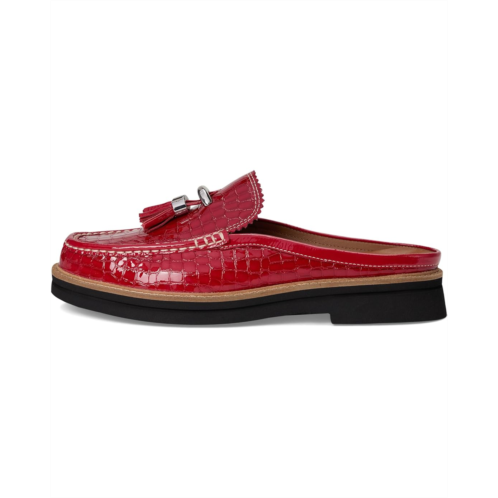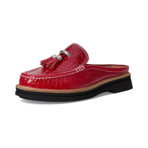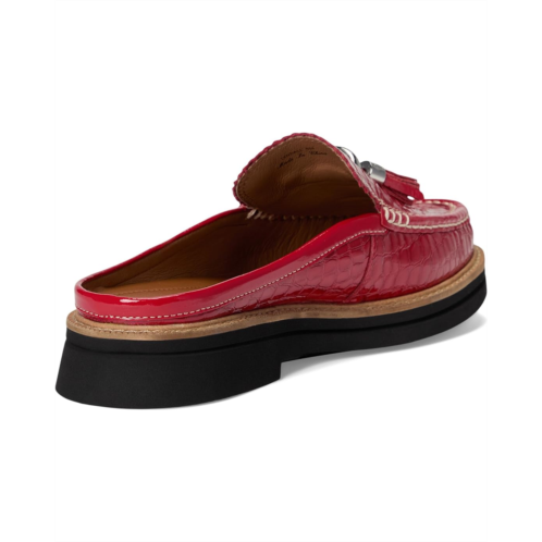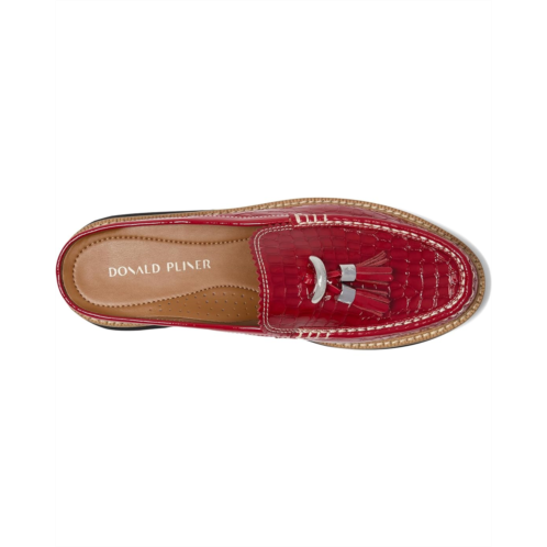 Meet your new obsession: The Donald Pliner Lyndall mule loafer. Crafted from high-shine, croc-embossed patent leather, this statement shoe stuns with its structured silhouette and glossy finish. The classic tassel detail and signature logo D-ring ornament add a touch of luxe charm, while the leather-lined interior and cushioned insole promise undeniable comfort with every stride. A rubber outsole offers confident grip, and the effortless pull-on design makes this mule as practical as it is polished.