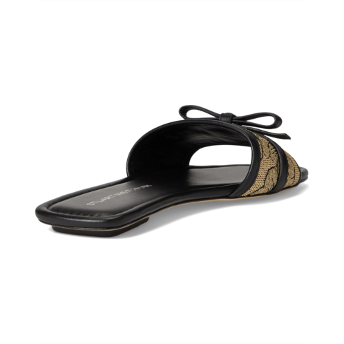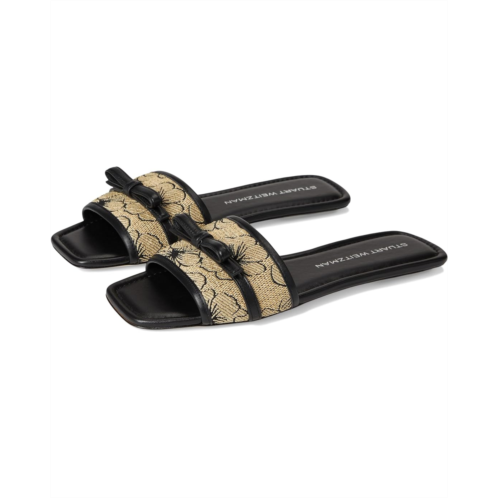 A cute bow adorns the vamp of this Stuart Weitzman Felicity Slide. The slip-on footwear features leather upper with a low-top profile and squared toe silhouette.