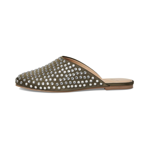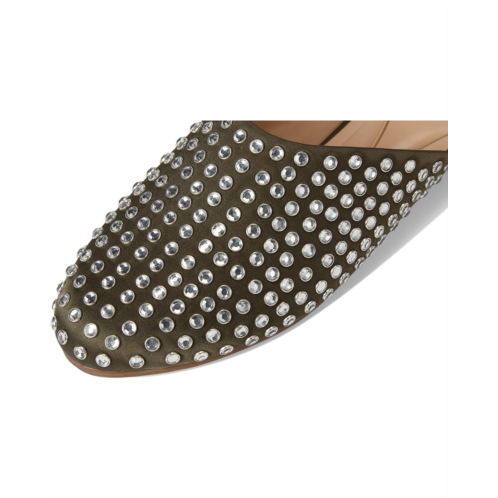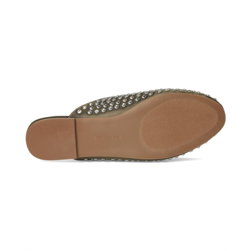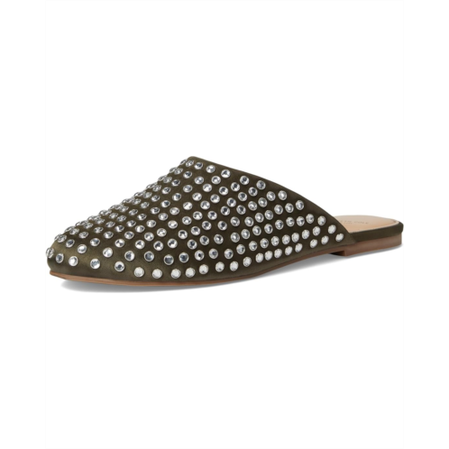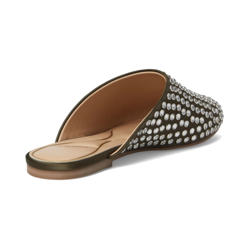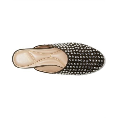 Gleam and glow with every step wearing the Kenneth Cole New York Saddie. Crafted from textile, man-made upper, cushioned insoles, this pair of studded rhinestone slide mules feature closed toe, slip-on style, and brand detailing on the footbed.