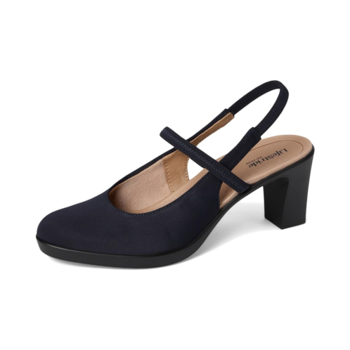 Modernize your look, whether you're at the office or out on the town, in these comfortable LifeStride Evoke Slingback Shoes with an easy block heel. The pumps feature fabric upper with an almond toe design and a stretch gore slingback strap. Trusted Soft System comfort technology for unmatched cushion, support, and flexibility in every pair. Traction sole provides you with extra stability.