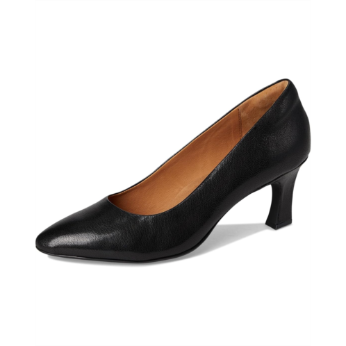 The Sofft Samy is a classic dress pump with a pointy toe silhouette and modern stiletto heel. The pull-on footwear features leather upper construction with microfiber padded sock and lining for added comfort.
