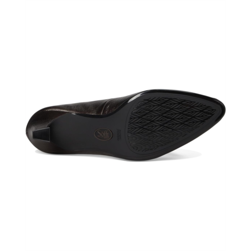 The Sofft Samy is a classic dress pump with a pointy toe silhouette and modern stiletto heel. The pull-on footwear features leather upper construction with microfiber padded sock and lining for added comfort.