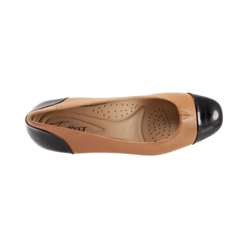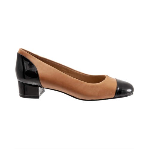 The Trotters Daisy pump will add sophistication to any wardrobe piece. The patent leather (toe cap and heel wrap) is vegan as well as the micro fiber. The main part of the shoe is leather.