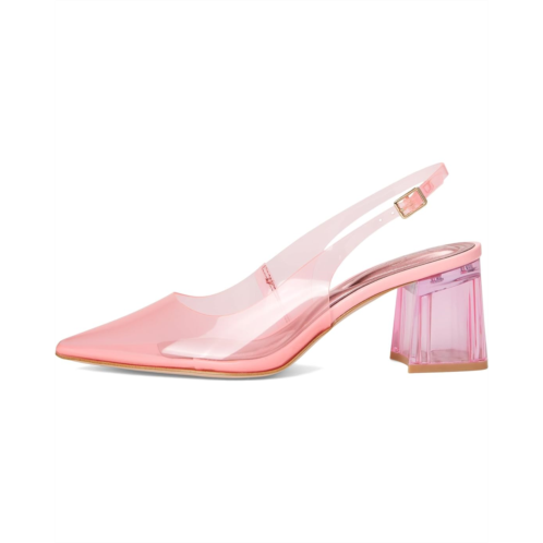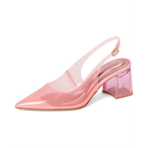 Shine bright, all night: The Jessica Simpson Syrina Lucite Slingback Pumps are the ultimate statement shoes. Crafted with a sleek faux leather upper, a pointed toe for a polished edge, and a chic slingback buckle strap closure for a secure fit, these pumps redefine sophisticated style. Designed with a polyester lining and rubber insole and outsole, they offer comfort and durability for all-day wear.