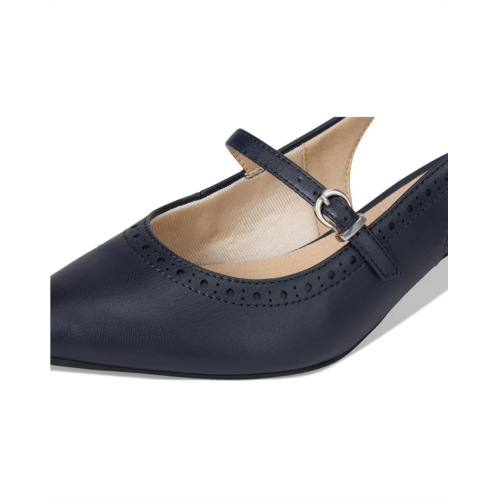 The LifeStride Marilyn Slingback Shoes that look so chic. You'll loving wearing these incredibly comfortable pumps with a sculpted kitten heel. Faux leather upper with a softly pointed toe, mary jane strap with buckle detail, slingback strap with built-in stretch, and sculpted heel. It features pointed toe, kitten heel, and soft system comfort package provides all-day support, flex, and cushioning.