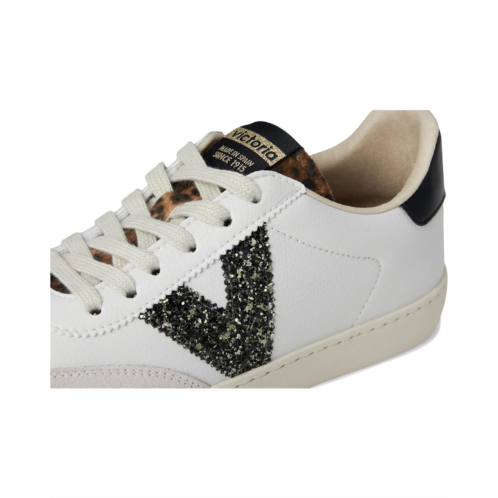 Step into timeless style wearing the Victoria Berlin Ciclista Glitter, where retro vibes meet modern comfort. Featuring a classic suede upper with a signature glitter 'V' detail, this iconic 1977 design brings a touch of sparkle to your step. Crafted with care, the shoe boasts a soft terrycloth lining, a cotton-covered comfort foam insole, and organic cotton laces for a perfect fit. The organic rubber sole offers durability and eco-conscious appeal, while the animal print tongue adds a wild twist. Lace-up and enjoy the blend of vintage charm and contemporary comfort in every stride.