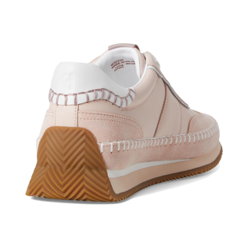 The modern man's essential: Cole Haan Grandpro Premier Runners. These vintage-inspired runners feature a sleek leather and suede upper, adorned with intricate blanket stitch details and architectural laser-cut perforations for a unique, sophisticated touch. The soft square toe and ankle strap with a functional buckle provide a comfortable fit, while the hidden elastic ensures easy wear. Designed for all-day comfort, the odor-controlling ethylene vinyl acetate footbed keeps moisture at bay, while the ethylene vinyl acetate midsole and geometric rubber outsole offer traction and durability for every step.