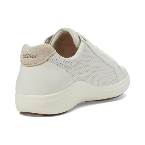 Featuring perforations along the lateral side, the Aetrex Courtney low-top sneaker has breathable leather upper construction to keep your feet comfy throughout. TheAetrex Orthotic Systemprovides arch support that helps stabilize and align the feet, and assists in relieving common foot pain.
