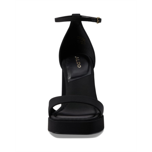 Stand on high block heels, the ALDO Montag Heeled Sandals have buckled ankle strap closure and an open square toe silhouette resting over the cushioned footbed.