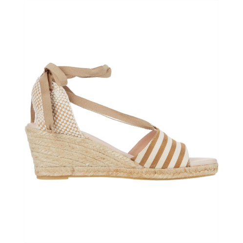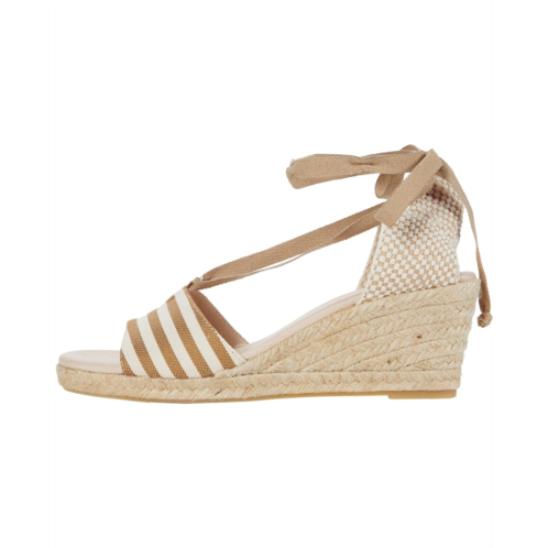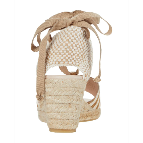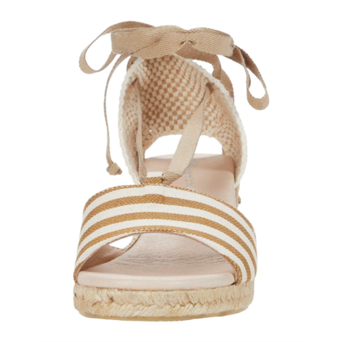 Make sure you're vacation-ready with the Eric Michael Sara espadrille sandal. The wedge boasts a striped canvas upper fixed with a lace accent that goes over the instep and ties at the back heel.