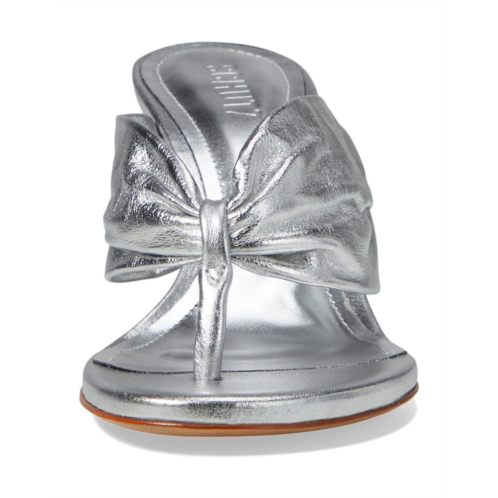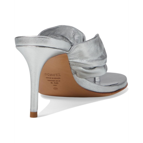Amp up your hot style wearing the Schutz Willow. Crafted from metallic leather upper, leather lining and foam insole, this pair of sandals features V-line strap detailing, slip-on closure, open round toe, stiletto heel and brand detailing on the footbed.