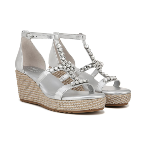 Get a next-level gleaming party look donning the Naturalizer Serena Ankle Straps. This wedge sandals feature sparkling stone embellishments on the straps for a splashy touch, contour+ comfort technology for a premium fit, and synthetic and metallic upper.