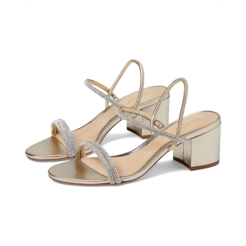 The Schutz Whiteley Block Sandals are intricately designed using clear rhinestone embellishments on the slim upper straps. This slip-on pair features mid-block heels, a backstrap closure, and an open round toe silhouette.