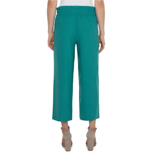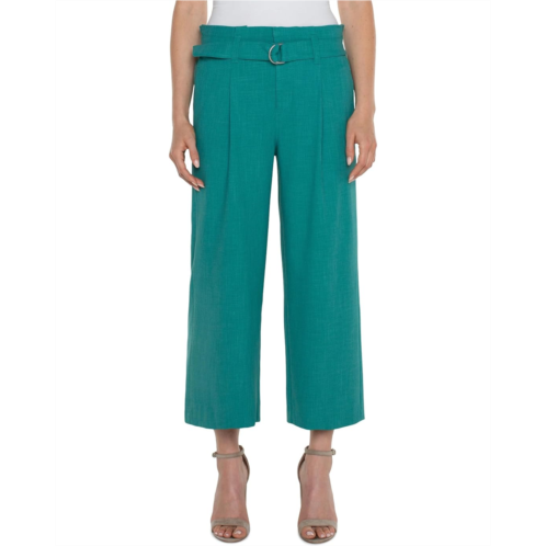 [US] Liverpool Los Angeles Belted Mid Rise Paper Bag Wide Leg Crop Stretch Woven Trousers