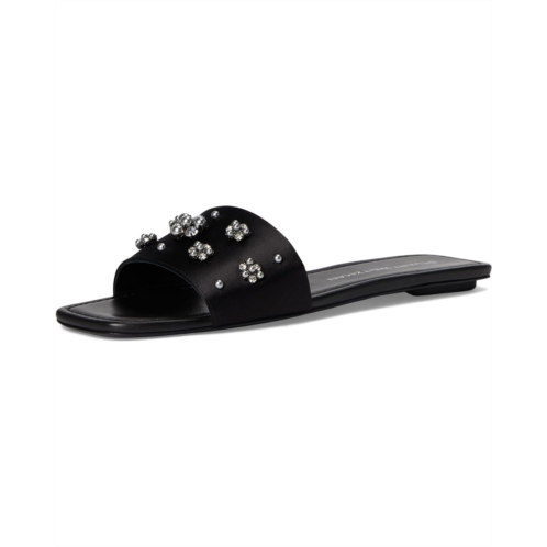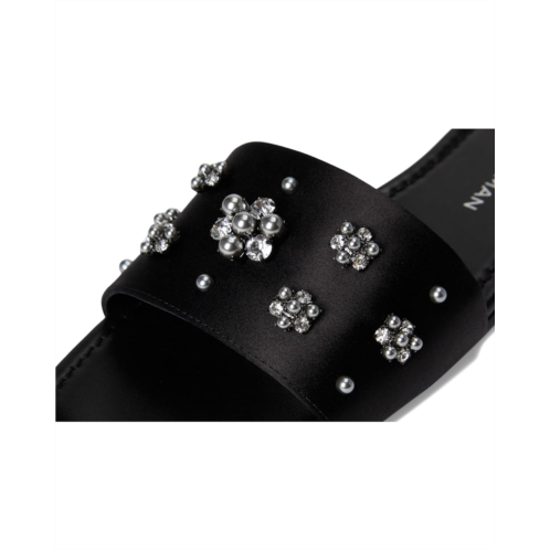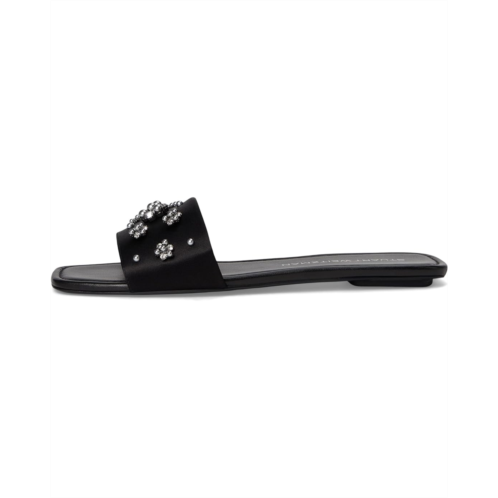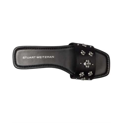 Indulge in the ultimate in fashion and function donning the Stuart Weitzman POPPY SLIDES. These chic slides feature sparkling floral details with luxe hand-soldered crystal and pearl embellishments on the silk upper. The leather lining and insole provide ultimate comfort, while the flat block heels offer a touch of elegance to any outfit.