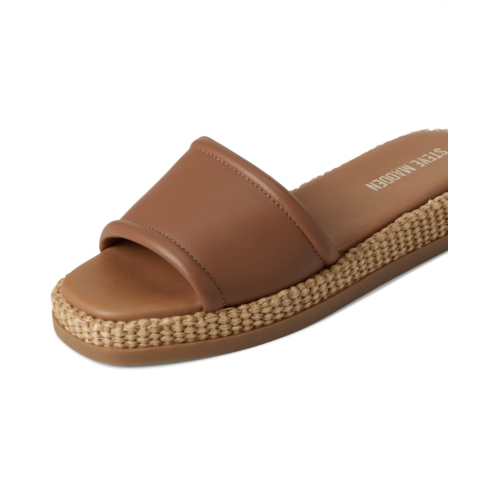 The Steve Madden Boardwalk sandals offer a comfortable slide design with a platform for added style. The open square toe adds a touch of sophistication. Perfect for any casual occasion, these slip-on sandals will elevate any outfit while keeping you comfortable all day. These come crafted with a cotton upper, synthetic rubber lining, and a comfortable rubber insole.